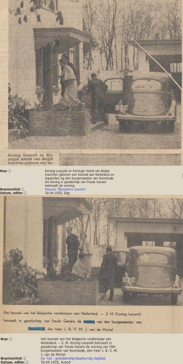 Op 30 april 1935 bracht het Koningspaar van België een bezoek aan Noordwijk. Geen Konings- of Koninginnedag, maar voor Noordwijk toch weer een beetje wel. De beide vorsten Leopold en Astrid werden ontvangen door het met hen bevriende burgemeesterspaar van Noordwijk, de heer en mevrouw Van der Mortel.