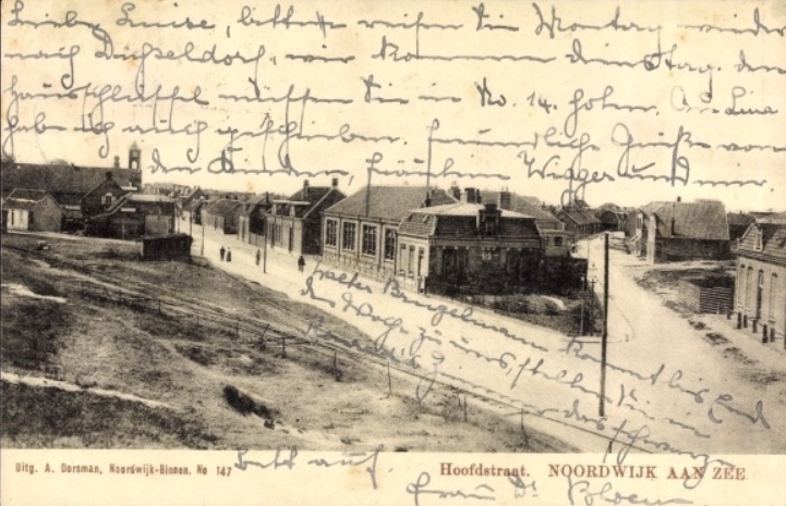 Het is weer eens zo’n onleesbaar mooie kaart, waarbij de afzender niet geschroomd heeft om ook de voorkant maar ff vol te kliederen. Opdat het geschreven deel toch op zijn minst zichtbaar moest blijven, werd een deel van het verhaal in één beweging door keurig langs de rijbaan van de Nieuwe Zeeweg verteld. Op die geweldige foto van de onvolprezen Dorsman. De Punt was nog niet gebouwd.