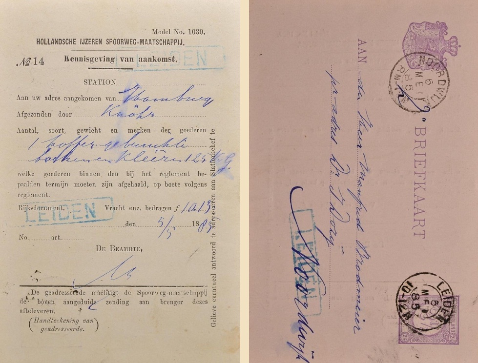Manfred Brodmeier was er zo eentje. Hij was blijkbaar afkomstig uit Hamburg, want hij kreeg een vrachtbrief van de Hollandsche-IJzeren Spoorweg Maatschappij dat er vanuit die plaats een koffer was aangekomen met 125 kg aan boeken en kleren. En of-tie die maar even wilde komen afhalen in Leiden. Het was 5 mei 1885 en dat afhalen moest waarschijnlijk gebeuren met paard-en-wagen of met de trekschuit, want de stoomtram naar Noordwijk zou pas een dikke maand later, op 21 juni 1885 in gebruik worden genomen. Of dat nog viel “binnen den bij het reglement bepaalden termijn” van afhalen, is niet duidelijk, maar het was wel zo gemakkelijk geweest. De tram stopte per slot van rekening voor de deur van het Instituut.
