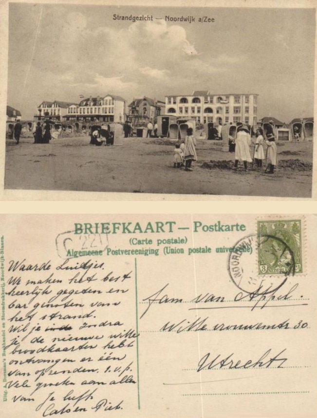Cato en Piet zaten daar in Noordwijk blijkbaar ook op enig rantsoen en hadden dringend behoefte aan tenminste één kaart, waarmee ze bij de lokale bakker wat – witte- brood konden kopen. Vandaar.
