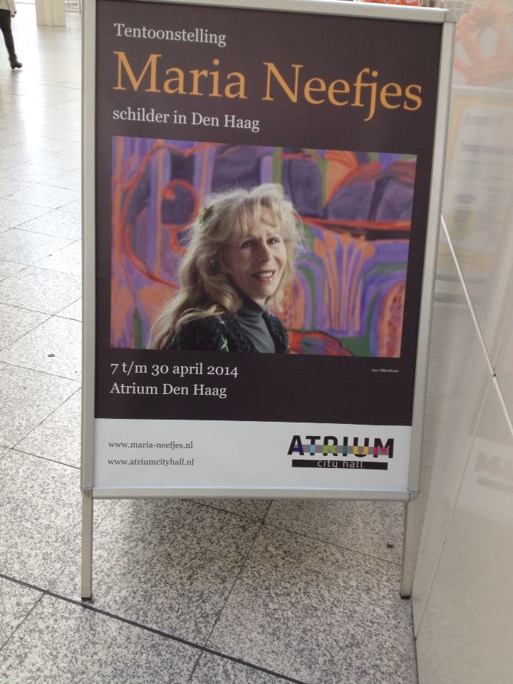 Ik heb wel eens eerder geschreven over de werken van Maria Neefjes, schilderes te Den Haag, maar ook geboortig uit een bekend Noordwijks gezin: haar vader het hoofd van de katholieke mulo “St. Willibrord” en haar zusje de schrijfster Margriet de Moor. Maar die connotatie doet geen recht aan het eigen kunstenaarschap van Maria. Vooral haar irissen vind ik prachtig (en ook nog een beetje Noordwijks). Verschillende schilderijen met irissen hangen nu in het Atrium van het stadhuis van Den Haag, naast ander recent werk. Ga naar Den Haag en loop ff dat Atrium binnen! Zie ook een eerder blog over haar.