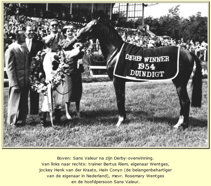 In 1951 werd een mooi lichtbruin hengstje geboren, dat “Eole” werd gedoopt. Het beestje groeide voorspoedig op. Als anderhalfjarige werd hij gekocht voor rekening van een in Ierland wonende eigenaar, door diens zaakwaarnemer Hein Conyn. De prijs van de Volbloed was voor Ierse begrippen zo laag, dat de nieuwe eigenaar de naam van zijn jonge hengst veranderde in “Sans Valeur”. Dat is Frans voor “Zonder Waarde” oftewel “Waardeloos”. De eigenaar bleek zich een jaar later in de waarde van zijn hengstje behoorlijk te hebben vergist en wij weten nu, 60 jaar later, dat “Waardeloos” één van de beste Nederlandse Volbloeds aller tijden is geworden. Op de lijst van Nederlandse fokproducten met het meeste aantal overwinningen staat Sans Valeur derde met 29, vlak achter King en Etoile du Nord, beide met 30 zeges.