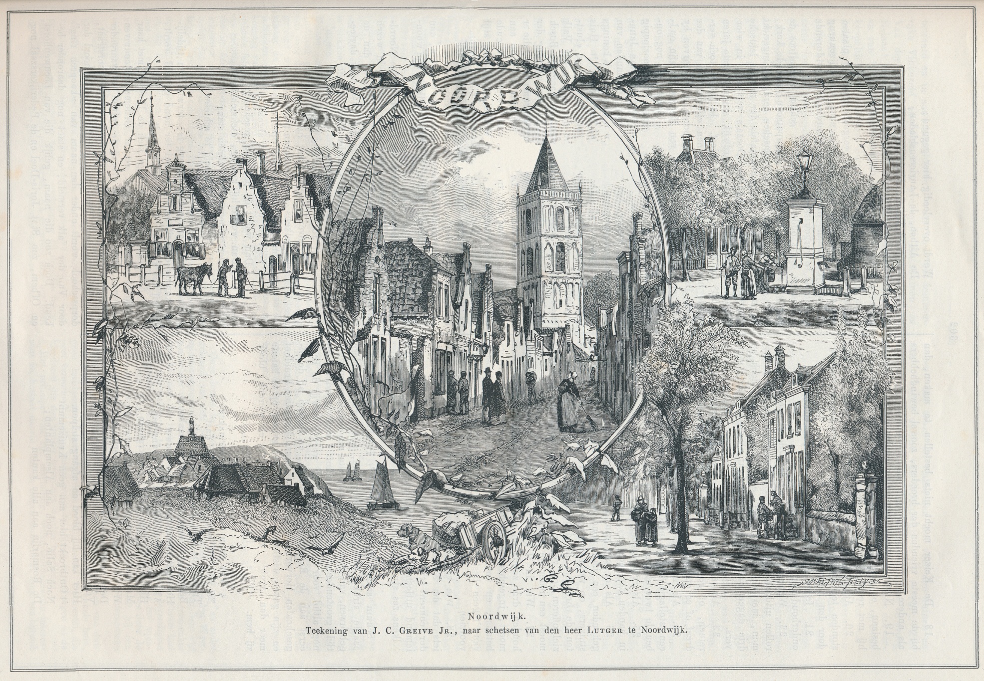 In nummer 33 van de jaargang 1881 verscheen een groot artikel van Dr. J. van Vloten, een bekende publicist aan het einde van de 19e eeuw, over de heerlijkheden van Noordwijk. Ik kom op dat artikel nog nader terug in een later stadium. For the time being alvast een illustratie bij dat artikel. Een tekening van ene J.C. Greive Jr. “naar schetsen van de heer Lutger uit Noordwijk”. Ik heb de afbeelding wel eens in het klein ten tonele gevoerd, maar nu krijg ik – met dank aan Willem – een perfecte scan. Klik 2x op het beeld en het ontvouwt zich in alle glorie.