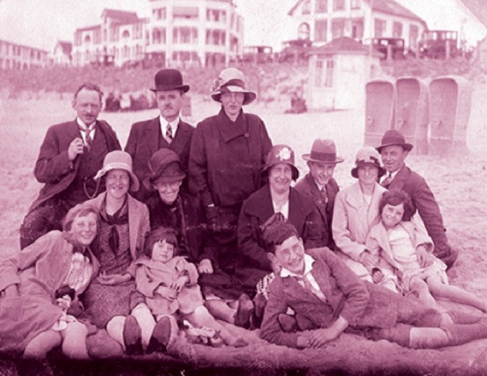 Zomaar een stemmig strandplaatje van een onbekende familie op het Noordwijkse strand ergens in de Jaren Twintig van de vorige eeuw. Veel hoeden (vooral de bolhoed is ongeëvenaard), oude auto’s op de achtergrond en een prachtig strandhuisje, uit de tijd dat ze nog niet – van waaibomenhout gemaakt – van de band liepen bij de Gamma.