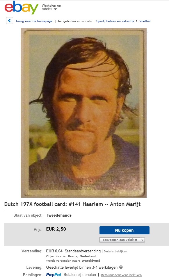 Er is een oud voetbalplaatje van hem te koop op ebay.nl voor de lousy prijs van twee euro vijftig. Uit zijn tijd bij Haarlem.