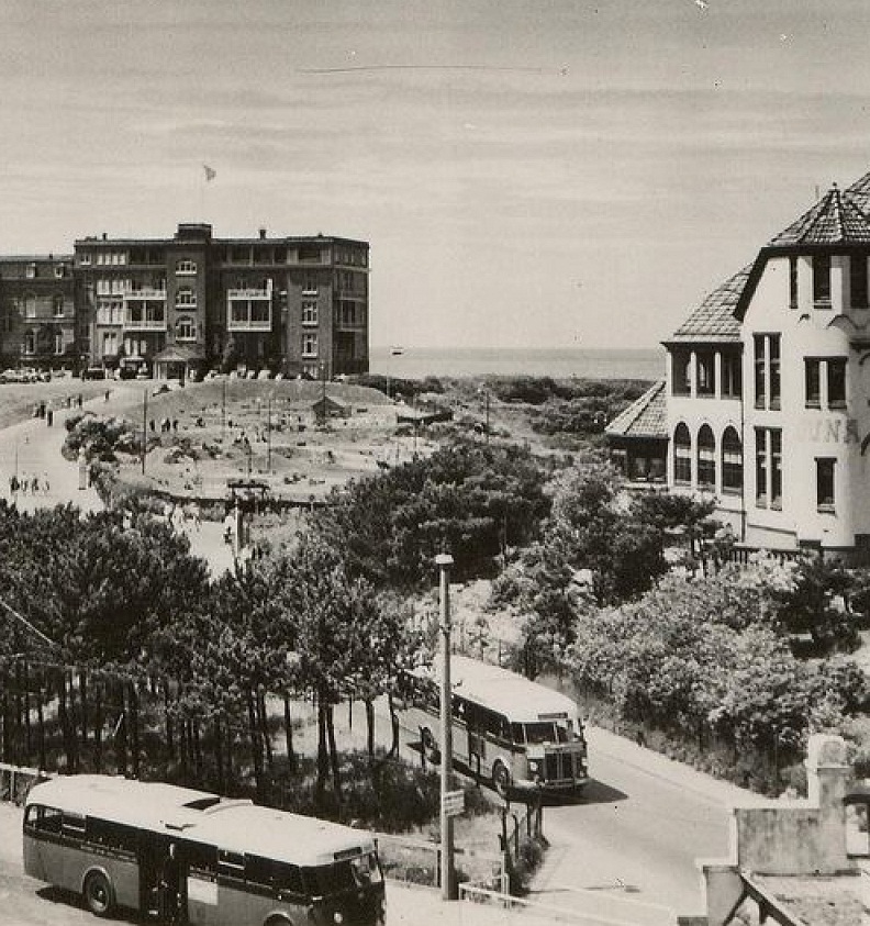 Het moet mooi geweest zijn om vanuit Haarlem of Den Haag met dit type bus (Crossley) aan te komen op deze plek: een zonovergoten Noordwijk, eindhalte Picképlein, hoge dennen voor een beetje schaduw, de zee al verleidelijk aan den einder.