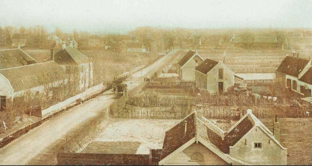 Recent kwam Ron met bijgaande foto op de proppen in “je bent een Noortukker als”. Een pracht plaat, waarschijnlijk genomen vanaf de molen “de Eendracht”, die stond op de hoek van de Wilhelminastraat en Molenstraat. Het uitzicht is over de Wilhelminastraat, “De Krocht” (of ‘Kroft’), zoals die heette naar het nevenstromende slootje. Dat slootje moet ooit een helder beekje zijn geweest, waarin de paling zichtbaar ronddartelde. Maar later kwamen er ook rioolgangen op uit en moet het vreselijk gestonken hebben allemaal. In 1914 werd het slootje overkluisd.