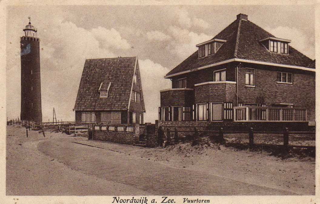 links af voor de vuurtoren stond mijn vader en zijn broer op het strand met hun linnententen en ligstoelen meer vroegen de badgasten niet.iets verder op jan en jaap koelewijn.