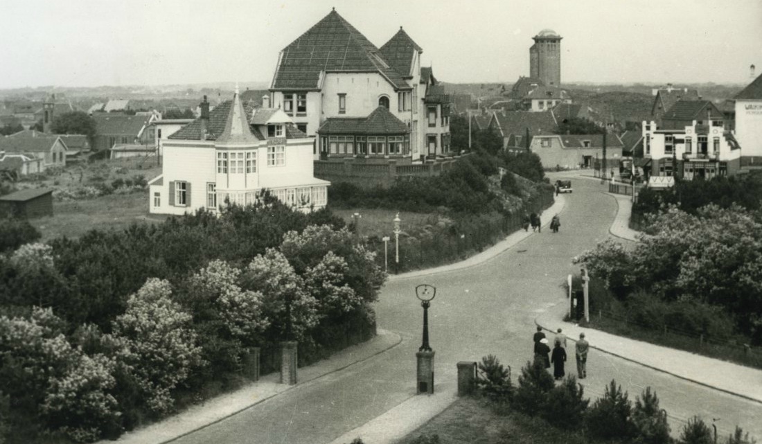 Zo op het oog een nogal ingewikkeld kruispunt van wegen, maar wat gaf het? Zoveel automobielen waren er nog niet. Een mooie, rustieke plek nog met veel bossages en geboomte. De villa’s Vera en Duna in al hun pracht en praal, het eerste VVV-kantoortje bij de trambaan, de watertoren. De lantaarns bij de oprit naar Huis ter Duin zijn van een ongenaakbare schoonheid.