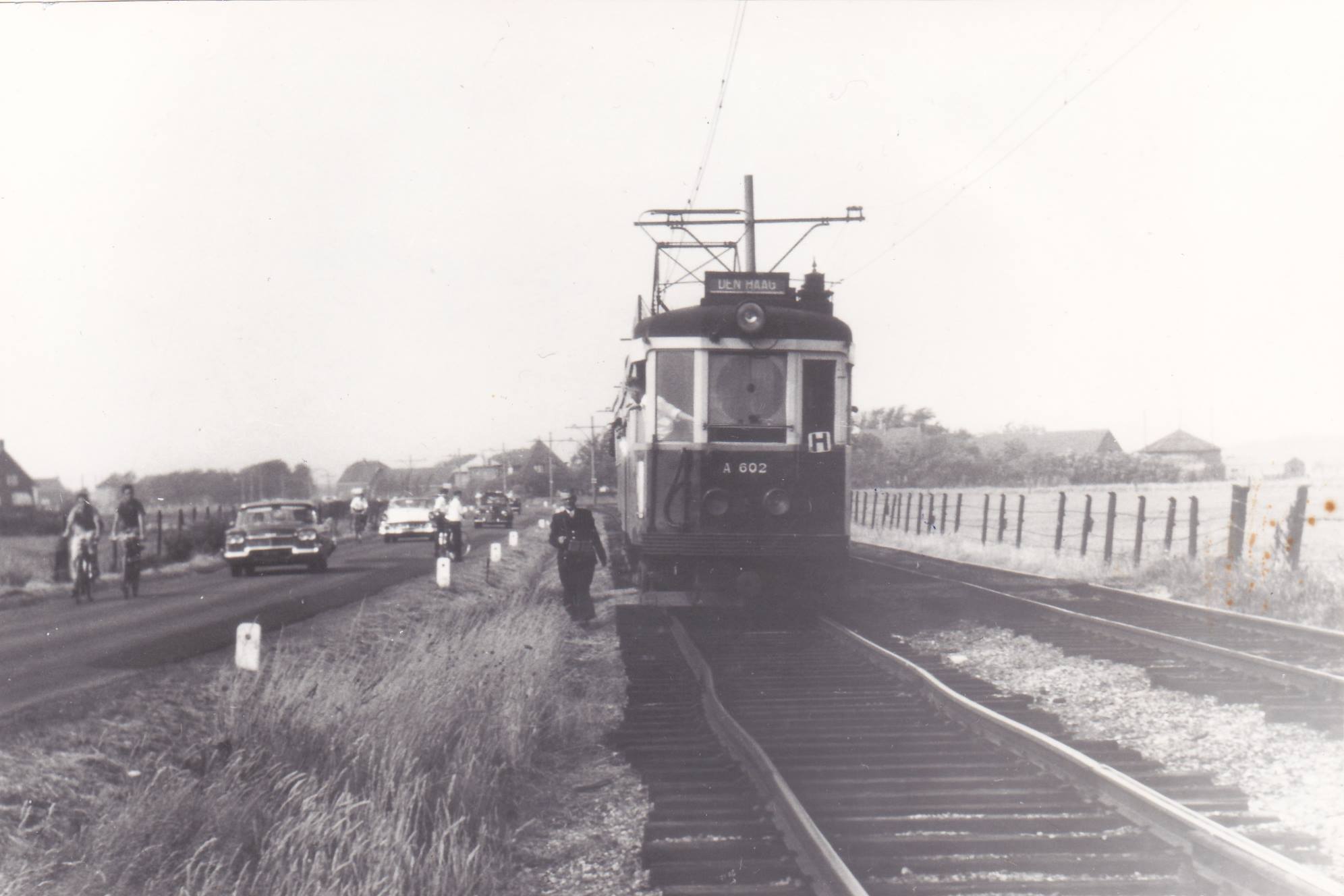 Zomer 1959 en het moet goed heet geweest zijn die dag, want die tramrails zijn door de warmte aan de slinger gegaan. Het verschijnsel heet ‘spoorspatting’ (ik heb het woord niet eerder gehoord of gelezen) en als je wilt weten hoe dat nu allemaal kan: klik hier.