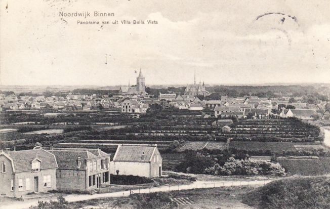 Als deze foto echt vanuit de Villa Bella Vista is genomen, dan is die villa haar naam dubbel en dwars waard geweest. De villa stond op het hoge duin in de hoek Rembrandtweg, Oude Zeeweg en Koepelweg volgens mij en het uitzicht is inderdaad larmoyant mooi geweest. Wat opvalt bij deze foto (er bestaan talloze, vaak identieke variaties op dit beeld) is de zichtbaarheid van de huizen, hoog aan de Oude Zeeweg, naast de toegang tot de ALgemene Begraafplaats. Het Breloftpark bestond nog niet.