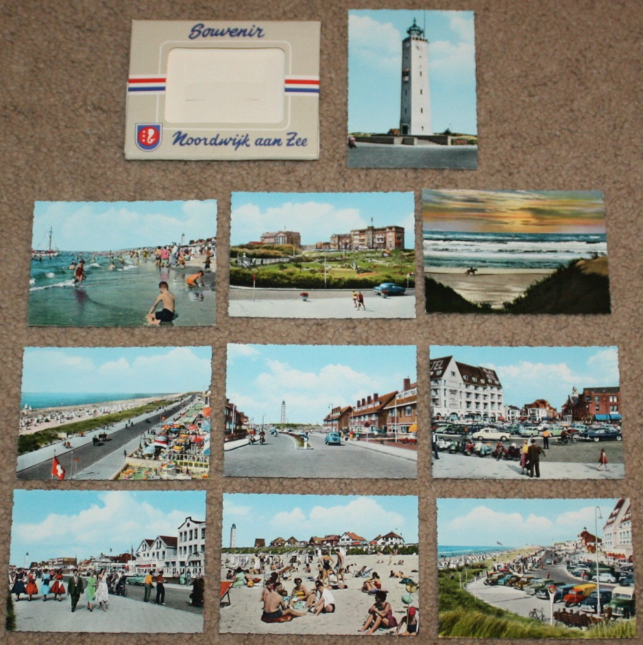 Het mapje is mooi genoeg, al is het alleen al vanwege de aparte, wat fletserige kleuren van de bijbehorende kaarten. Van die keluren die je ook wel tegenkomt in oude Amerikaanse films metGary Grant en Doris Day. Het zal wel liggen aande kwaliteit van de gebruikte film, andere emulsie en zo (heb er verders geen verstand van). Maar het zijn kleuren die me – nog los van het beeld zelf – vrijwel automatisch terugzetten naar het begin van de jaren zestig. Doris Day-gevoel.