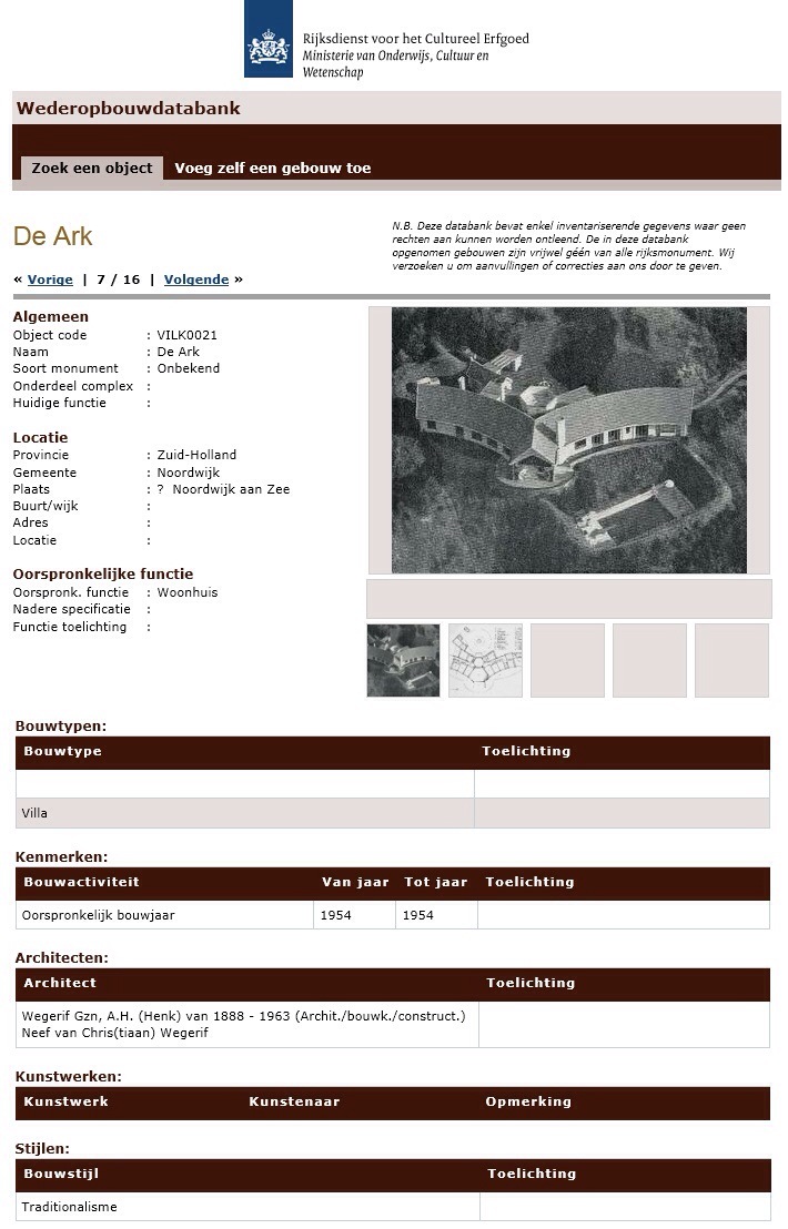 De Rijksdienst voor het Cultureel Erfgoed heeft een aparte website met gebouwen uit de tijd van de wederopbouw (na 1945), waaraan een zekere cultuur-historische betekenis wordt toegekend. Op die site – wederopbouwdatabank – 14 gebouwen in Noordwijk, waarvan er tenminste één inmiddels is gesloopt (de voormalige Willibrord-mavo aan de Van Panhuysstraat).