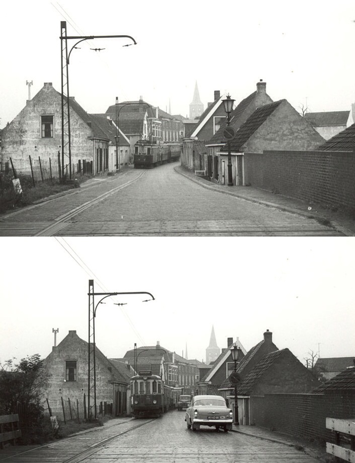 Het zijn twee verschillende foto’s, maar ze zijn kort na elkaar genomen. De fotograaf is gewoon ff blijven staan. Misschien heeft-ie nog wel meer foto’s genomen dan alleen deze twee. Net zo makkelijk: als jij niet naar de tram toe gaat, komt de tram vanzelf wel naar jou.