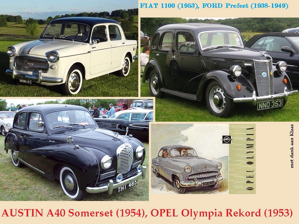 fiat 1100 millecento van 1953 1962 meer dan een miljoen exemplaren was geliefd maar had veel minpunten,de ford prefect model van net voor de oorlog tot begin fifties geassembleerd en nooit uit de verf gekomen omdat er modernere modellen ontstonden.
