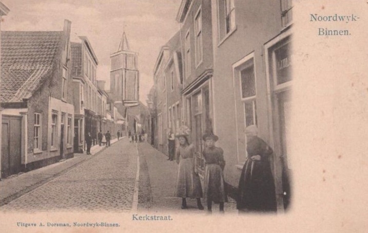 Een oude foto van het midden van de Kerkstraat, zo te zien met potlood en pen her en der en beetje aangescherpt, omdat de lens van Dorsman niet helemaal scherp stond. Om de zaak een beetje te duiden: links het pand waar in mijn tijd bakker Joop van Westerop zijn heerlijke broodjes bakte en verkocht.