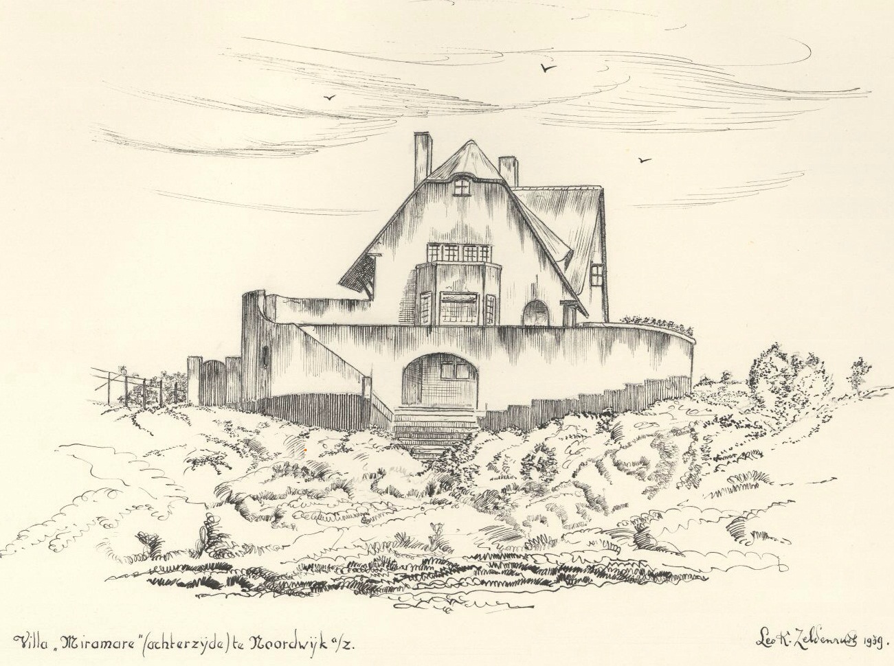 Deze tekening uit 1939 van de Villa Miramare in Noordwijk is een interessante. Afgezien van de pracht van deze villa, blijf ik een beetje zitten met de vraag: waar stond deze villa dan? Er was vroeger een Miramar, de de dancing annex club onder het oude Palace Hotel. Maar van een villa met bijna diezelfde naam heb ik geen ander beeld dan deze tekening.