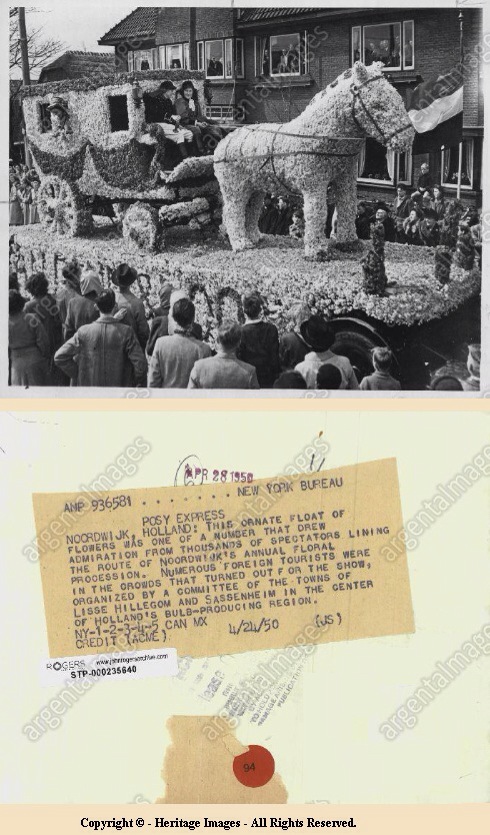 De foto is gedateerd 1950, maar waar precies in Noordwijk deze foto is genomen kan ik niet zo één-twee-drie determineren. Bijzonder is-tie wel en dat vond de persfotograag ook. Of de foto daadwerkelijk in een krant verschenen is, weet ik niet, maar 64 jaar later staat de foto toch maar mooi te koop op ebay.