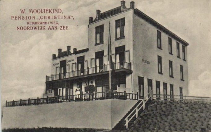 Maar naar aanleiding van dat stukje, meldde Frans Mooijekind dat niet van Beelen, maar zijn oom Willem Mooijekind opdracht gaf tot de bouw van Pension Christina. Willem had blijkens een notariële akte van 20 juli 1911 een stuk grond gekocht aan de Rembrandtweg van de Duinexploitatiemaatschappij “De Toekomst” en daarop een pension gebouwd of laten bouwen (Willem was timmerman van beroep, hij kan het ook zelf gebouwd hebben). Architect was – volgens mij – de onvermijdelijke H.J. Jesse. De naam ‘Christina’ was ook de voornaam van Willems eerste vrouw, Christina Maria de Groot.
