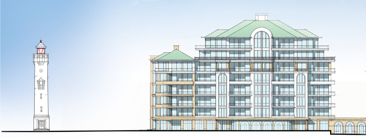De plaatjes laten slechts een deel van die plannen zien, die in ieder geval zijn aangepast aan de hoogte van de vuurtoren. Moet kunnen zo. Ben benieuwd. Onder meer naar die – hopelijk – geweldige groene dakpartijen.
