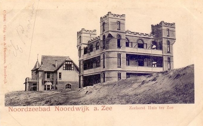 Huis ter Zee lijkt nog maar net opgeleverd: de ramen staan wijd open om de bouwlucht te verdrijven en er wappert geen gordijn in de wind. Villa Seehorst staat er fantastisch bij van deze – niet zo vaak geziene – kant. Braakman spreekt van ‘Zeehorst’, maar de villa was gebouwd en genaamd door een Duitse industrieel uit het Rheinland. En Duitsers schrijven ‘zee’ met een ‘s’. Intussen is het een prachtig gezicht: deze twee karakteristieke gebouwen half verzonken in de seereep.