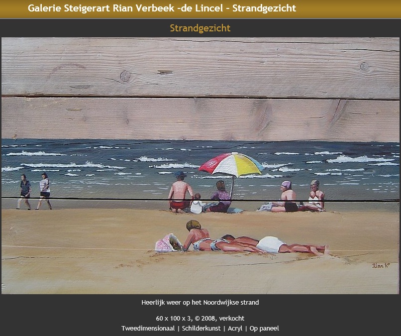 Mooie (Noordwijkse) werken te koop bij Galerie Steigerart. Ik haal de site van deze galerie maar weer eens voor het voetlicht, want met strakke regelmaat verschijnt daarop steeds weer prachtige nieuwe kunst, meestal op een ondergrond van steigerhouten planken. Zoals dit tafereel aan het Noordwijkse strand.