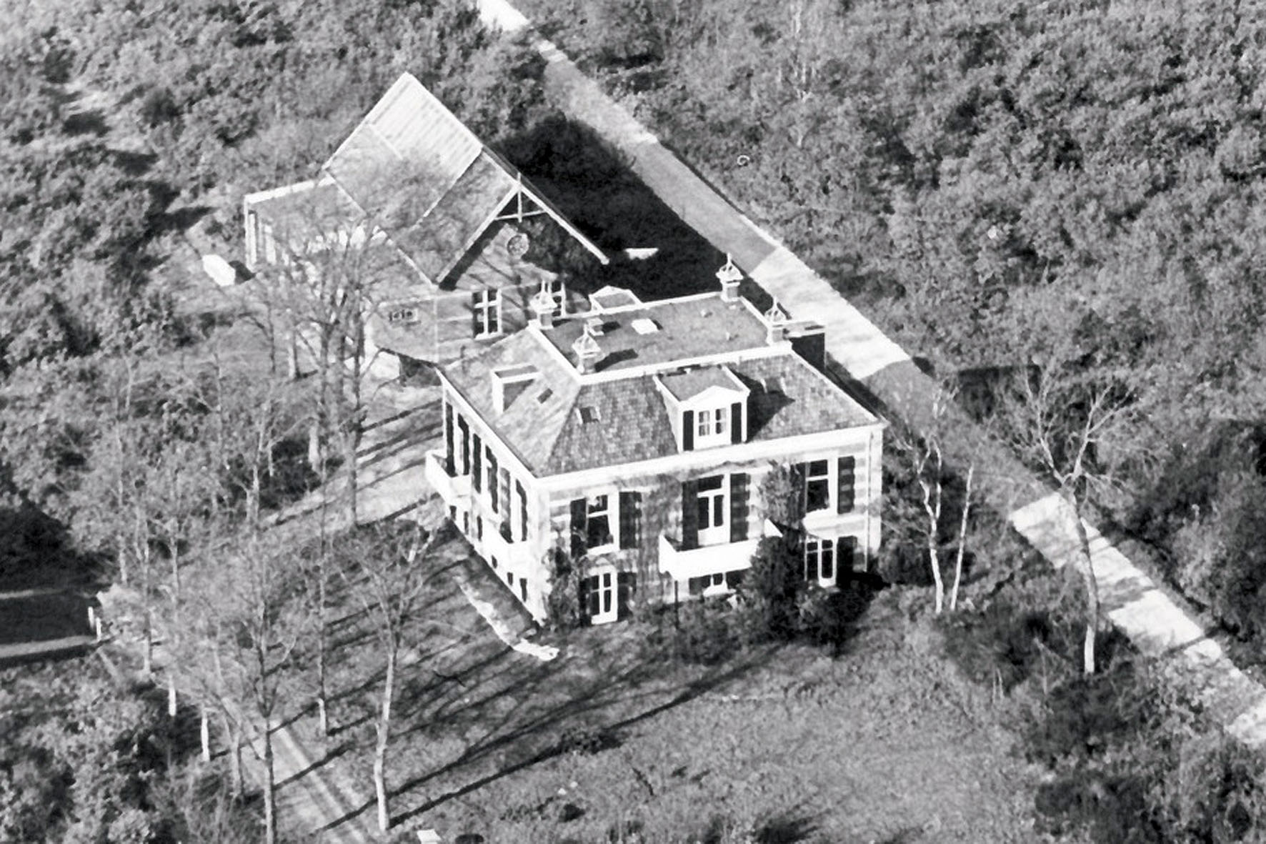 Ik schreef tijden geleden al over het sanatorium van ene Dr. Oldenboom dat ergens halverwege Noordwijk / Noordwijkerhout onderdak bood aan tbc-patiënten. In de Villa Groot Zandhorst. Het sanatorium maakte gebruik van tal van verschillende therapieën, die in verschillende andere blogs ook allemaal aan de orde kwamen. Nu vind ik een luchtfoto van het gebouw. Een mooie prent van een mooi landhuis, dat helaas ergens in de jaren zeventig van de vorige eeuw verloren moet zijn gegaan. Kunstenaar Oswald Wenckebach woonde hier een tijdje.