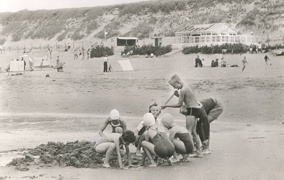 De foto is genomen bij de Duindamseslag met op de achtergrond de strandtent van Van Westerop uit Noordwijk. Maar de kinderen zullen wel uit Noordwijkerhout en ommelanden zijn gekomen. Ik geloof niet dat er veel Noordwijkers en Duitsers helemaal naar de Duindamseslag togen. Ik kwam er in ieder geval nooit.