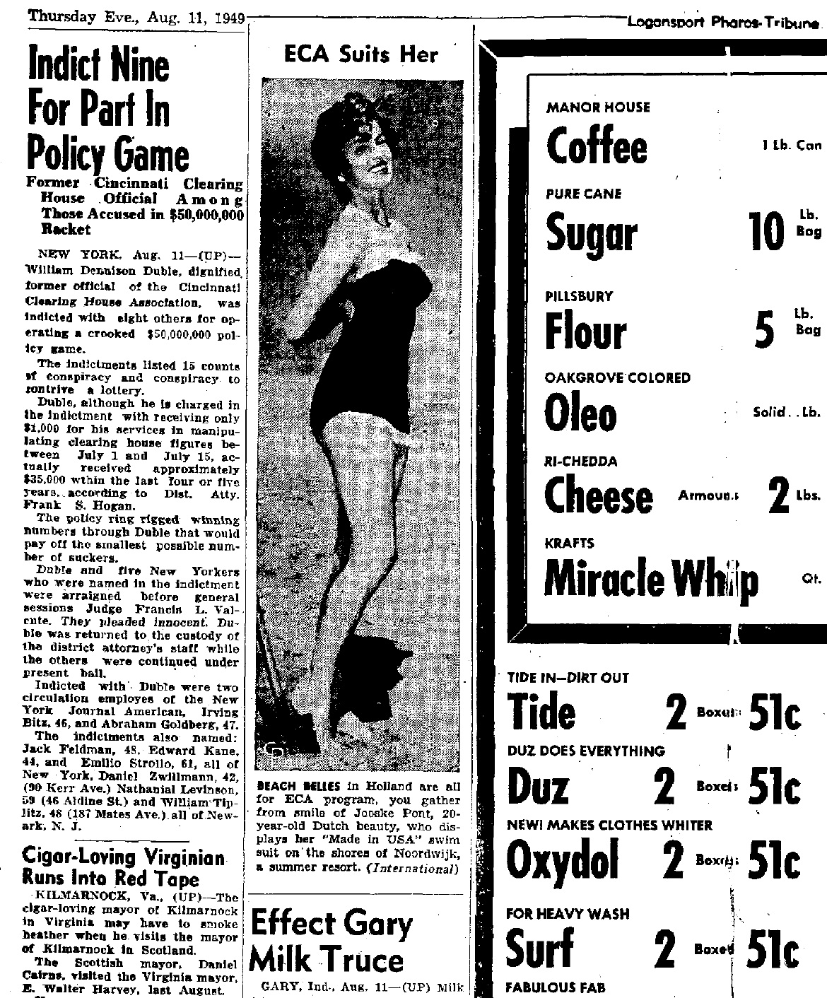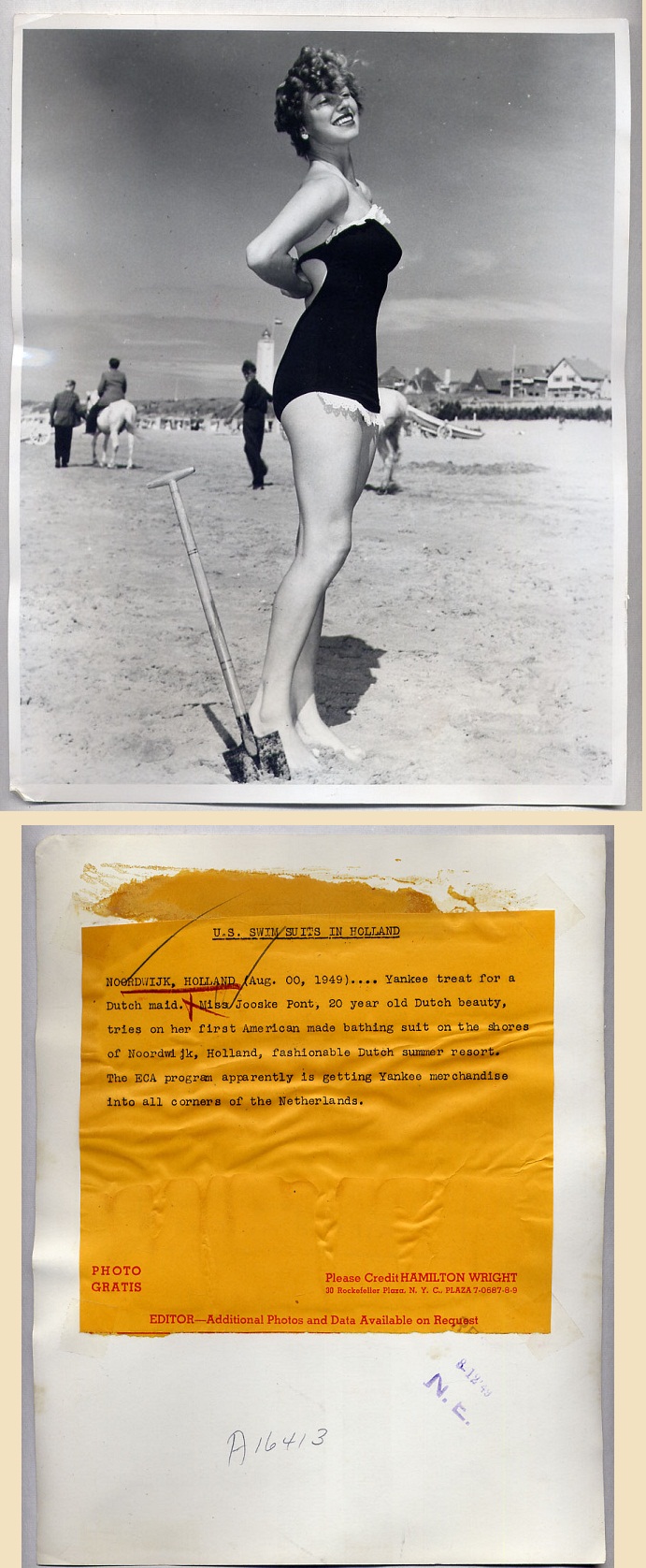 De foto van deze Nederlandse ‘Belle’, ene Jooske Pont, was blijkbaar genomen door iemand van fotopersbureau Hamilton Wright uit New York. Misschien wel door Hamilton zelve. Feit is dat de foto werd afgedrukt mét onderschrift in de Logansport Pharos-Tribune van 11 augustus 1949. Logansport is een stadje in Indiana, USA, een dikke 100 km boven Indianapolis. En een paar maanden later, op 11 november 1949, stond ze – dit keer met klompen aan! – in de Suffolk County News, een krant die verscheen in Sayville op Long Island bij New York. Zie ook eerder blog.