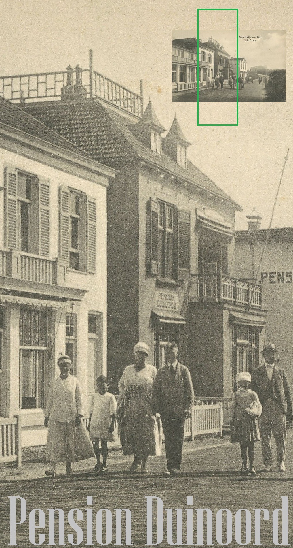 Het Pension Duinoord op de foto was eigenlijk ‘Pension Duinoord 2’. Het eerste Pension Duinoord stond ernaast. op de hoek met de Abraham van Royenstraat. Dat pension dook hier al eens eerder op in de annalen van dit blog.