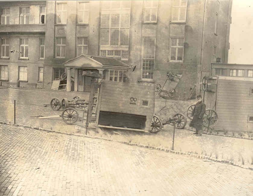Die manschappen waren op tal van plekken in Noordwijk ingekwartierd, waaronder in Huis ter Duin. Dit plaatje getuigt ervan. Wat dat allemaal moet met die ondersteboven geworpen badkoetsen en wagenwielen is de vraag. Ik vermoed dat het hier om een oefening ging, aan de hand waarvan de mannen scherp gehouden werden om niet in verveling en lethargie te vervallen. Het manschap rechts op de foto staat erbij alsof-tie persoonlijk verantwoordelijk was voor de janboel achter zich. Alsof-tie zojuist met getrokken bajonet een aanval op de badkoetsen heeft uitgevoerd en daarbij de overwinning heeft behaald. Zegevierend op de puinhopen. Maar in werkelijkheid was het allemaal niet zo erg als het leek.