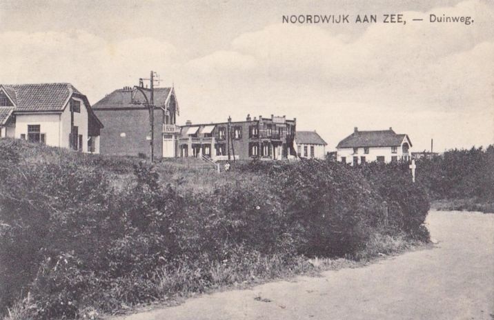 Ik herinner me dat er onderlangs dit stukkie Duinweg een paadje liep, met keitjes bestraat, van Nieuwe Zeeweg tot aan de Quarles. Ongeveer gelijkvloers met het ter rechterzijde gelegen teelland. Als onze ouders bovenlangs liepen, gingen wij onderlangs. Volgens mij is dit een foto van dat paadje. Alleen kan ik het beeld dan niet zo goed rijmen met ie trampaal bij het oude koetshuis van Albert Verwey, op de hoek Nieuwe Zeeweg/Duinweg. Tsja.
