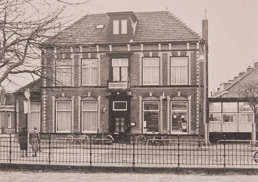 Het was zeker één van de mooiste panden van Noordwijk, maar in Noordwijk gaan de mooiste panden meestal het eerst voor de bijl. Ik zat op de RK Jongensschool er tegenover, de foto is van de speelplaats van die school af genomen. Ik was altijd bijzonder geintrigeerd door deze apotheek en vooral ook door die erker ter rechterzijde. Daar brandde altijd een fel neonlicht en daar slopen dames en heren in lange witte jassen rond, die met pillen en drankjes en ander ongerief in de weer waren. Waarom wist ik niet. Het had allemaal iets geheimzinnigs. Het was naar mijn overtuiging pure alchemie die daar werd bedreven, ook al kende ik dat woord toen nog niet.