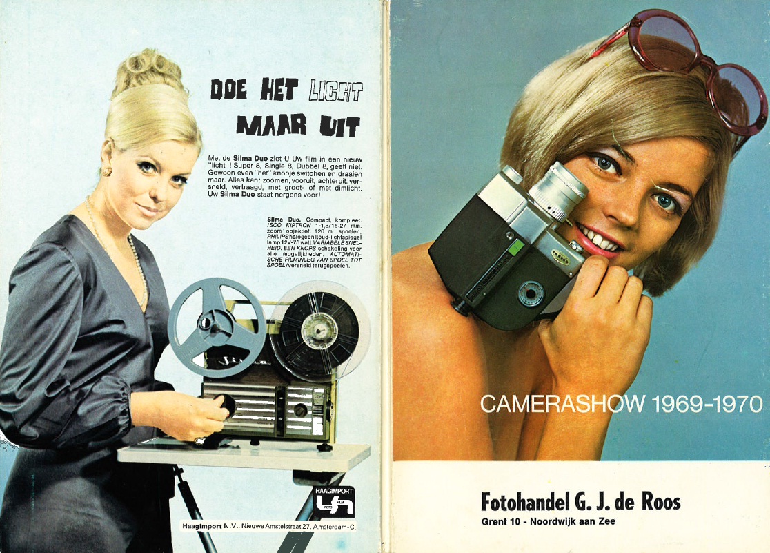 Een catalogus van camera’s en projectoren en weet ik niet wat er allemaal te koop was bij Fotohandel G.J. de Roos. Het is nog een hele pocket vol. Maar net zoals in het vorige blog Sjaak van den Berg een hele branche-organisatie van slagers achter zich had bij de productie van een receptenboekje, zo had G.J. de Roos de hele fotovakbranche achter zich staan. Die leverde hem een pocket aan met prachtige producten. Net zoals bij de slagers, kwam er alleen op de kaft steeds een andere naam te staan.