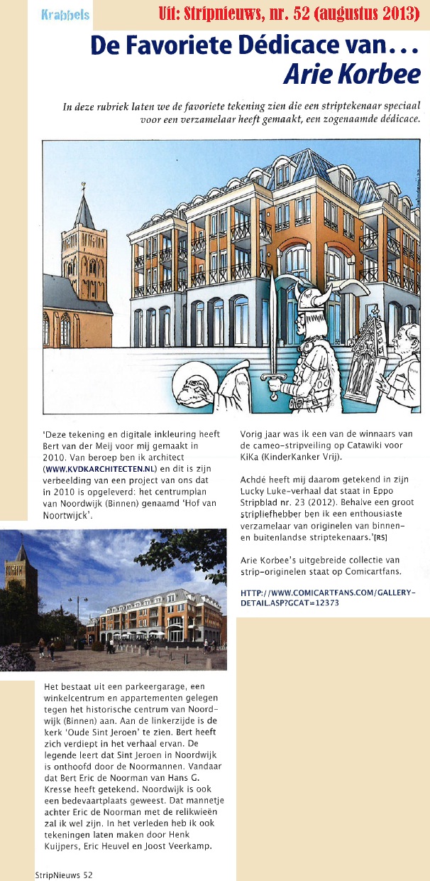 Architect Arie Korbee is naast een succesvol architect ook een fanatiek stripliefhebber. En hij weet dat zelfs nog met elkaar te combineren. Eerder spotte ik al een prachtige tekening van Joost Veerkamp van het nieuwe Huis ter Duin (van de hand van Arie). In een aflevering van Stripnieuws van vorig jaar kom ik dit artikeltje tegen met nadere tekst en uitleg over het – vaak gelukkige – huwelijk tussen strip- en bouwkunst. Mooi.