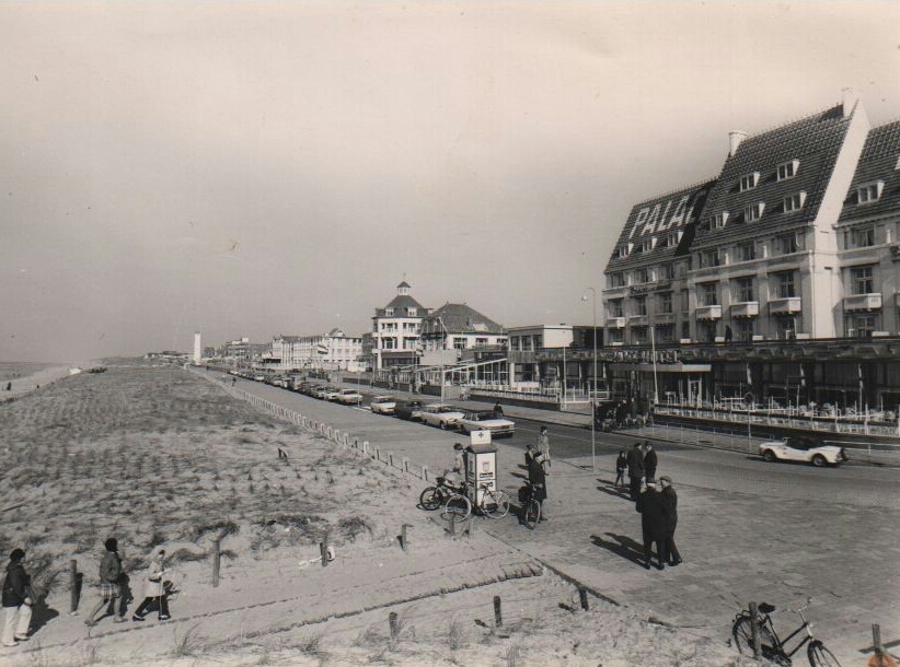 De meeste foto’s die van dit punt ziet, zijn tijdens het zomerseizoen genomen. Er staat altijd een ijskar op en altijd de viskraam van Caspers uit de Kerkstraat. Maar nu is het stil. Een paar mensen, toch nog wat auto’s op de boulevard en verder alleen de boeken- en tijdschriftenbus van het Rode Kruis, markant in het midden. Ik probeer de tijd te duiden: Van Schie heeft al een nieuw jasje gekregen. Ik denk dat het kort vóór de brand is in het Palace Hotel. Misschien wel héél kort: november 1978 of zo. (met dank aan Perry)
