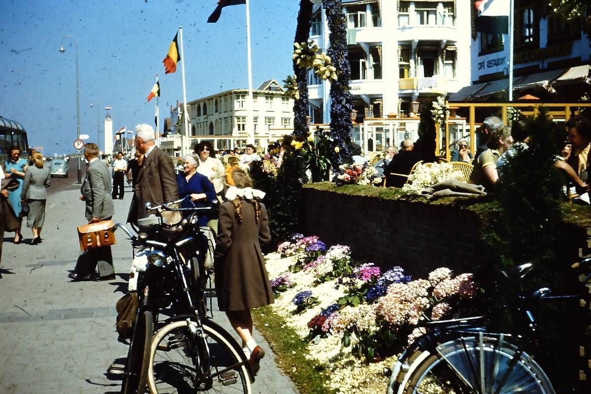 De foto is een afdruk van een 35mm dia uit de Jaren Vijftig. Meer weet ik er ook niet van, evenmin als de verkoper van de dia op ebay.com. Laat allemaal onverlet dat het een prachtig beeld is, zowel wat kleuren betreft als kwa sfeer. Noordwijk in de jaren vijftig moet in kleur heel erg mooi zijn geweest (ik ken de jaren vijftig grotendeels in zwart-wit, ondanks het feit dat ik er zelf middenin leefde).