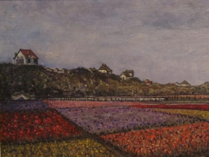 Ik weet niet meer (of minder) dat de maker van dit schilderij de Leidenaar Paulus Jacob Teske was. Teske leefde van 1879 tot 1962 en als je op die naam googelt, kom je wel meer werken van hem tegen, meestal stillevens. Dit schilderij van bollenvelden tegen de Zuidduinen is te koop op marktplaats.nl en het hoogste bod staat op dit moment op € 125,00.