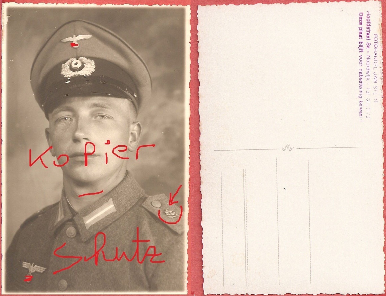 Intussen is het op de foto allemaal ijdelheid troef. Zo’n verkeerde, fascistische pet op een uitgestreken nazitronie, door Jan Steen voor de eeuwigheid in een foto gevangen. “Deze plaat blijft voor nabestelling bewaard” stond er ook nog achterop de foto gestempeld. Mag hopen dat Jan na de oorlog zijn kachel heeft aangemaakt met dit soort van negatieven. En zo’n dikke 70 jaar na dato hoeft er nog steeds niets van dit al meer ‘geschutzt zu werden.‘