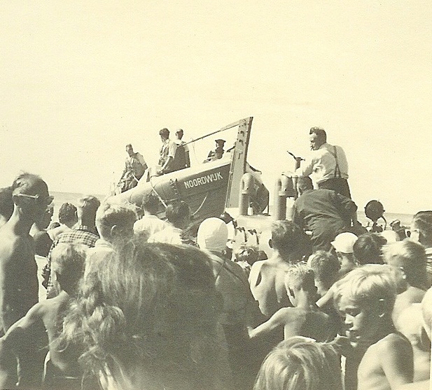 Ik krijg van Toon (met veel dank) een serie prachtige foto’s van de Kurt Carlsen, waarmee de Noordwijkse Reddingsbrigade op een zonnige dag in 1953 aan de wandel is. De boot is nog gloeiend nieuw, want dat jaar bij de Gebroeders Taat in Katwijk gebouwd en in Noordwijk afgeleverd. Misschien – maar dat vermeldt de geschiedenis hier niet – is het wel zijn eerste te water lating van dit schip uit de zgn. ‘Eierlandklasse’. Hij zou dienst blijven doen in Noordwijk tot 1990. Zevenendertig jaren lang. Daarna zou die verzeild raken op een vergeten graslandje ergens op Ameland, ware het niet dat een paar ondernemende Noordwijkers de boot daar weer opvisten, naar Noordwijk terugbracht en volledig restaureerden/