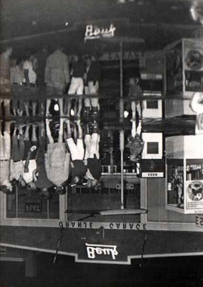 Het water stond zo hoog voor de garage van Beuk aan de Oranjeweg en het was zo rimpelloos, dat de weerspiegeling van de aanblik feilloos uitpakte. Daarmee kan je de foto net zo goed omdraaien en als je die dan op zijn beurt weer spiegelt, krijg je gewoon de letters weer te lezen, zoals ze moeten staan: Beuk en Oranjegarage en Esso. Alleen het perspectief is veranderd, maar daar kan ik ook niks aan doen (met dank aan Dirk-Jan).