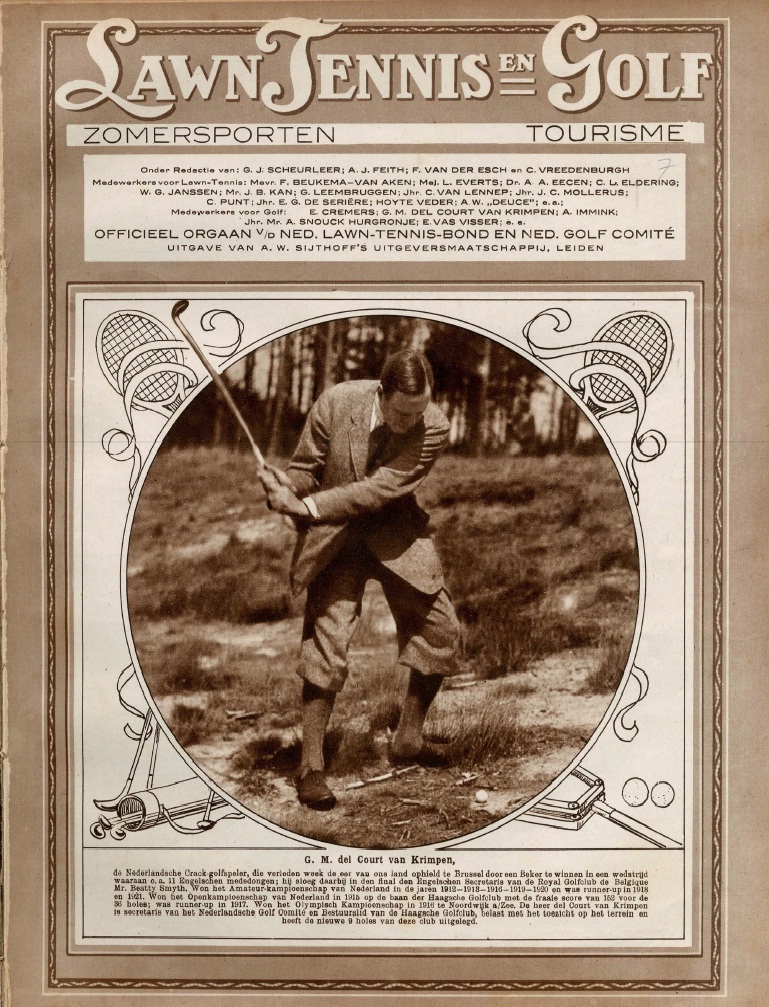 Het bijschrift bij deze foto vermeldt dat golfer G.M. del Court van Krimpen in 1916 op de Noordwijkse golfbaan het Olympisch kampioenschap won. Dat lijkt heel wat, maar in feite ging het hier om nationale kampioenschappen, die ietwat overdadig met ‘olympisch’ werden aangeduid. Misschien was golf toen al wel een olympische sport (nu nietmeer, geloof ik), maar de echte Olympische Spelen zijn in Noordwijk nooit gehouden. Ook niet in 1928 toen de Spelen in Amsterdam gehouden werden. Men had toen natuurlijk best een zeilwedstrijdje kunnen houden in Noordwijk of een wielerwedstrijd. Of een golftoernooi. Maar ja, dat gebeurde niet.