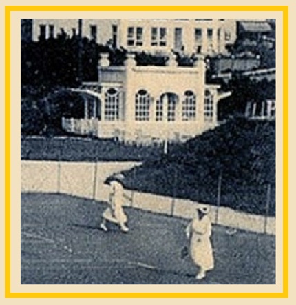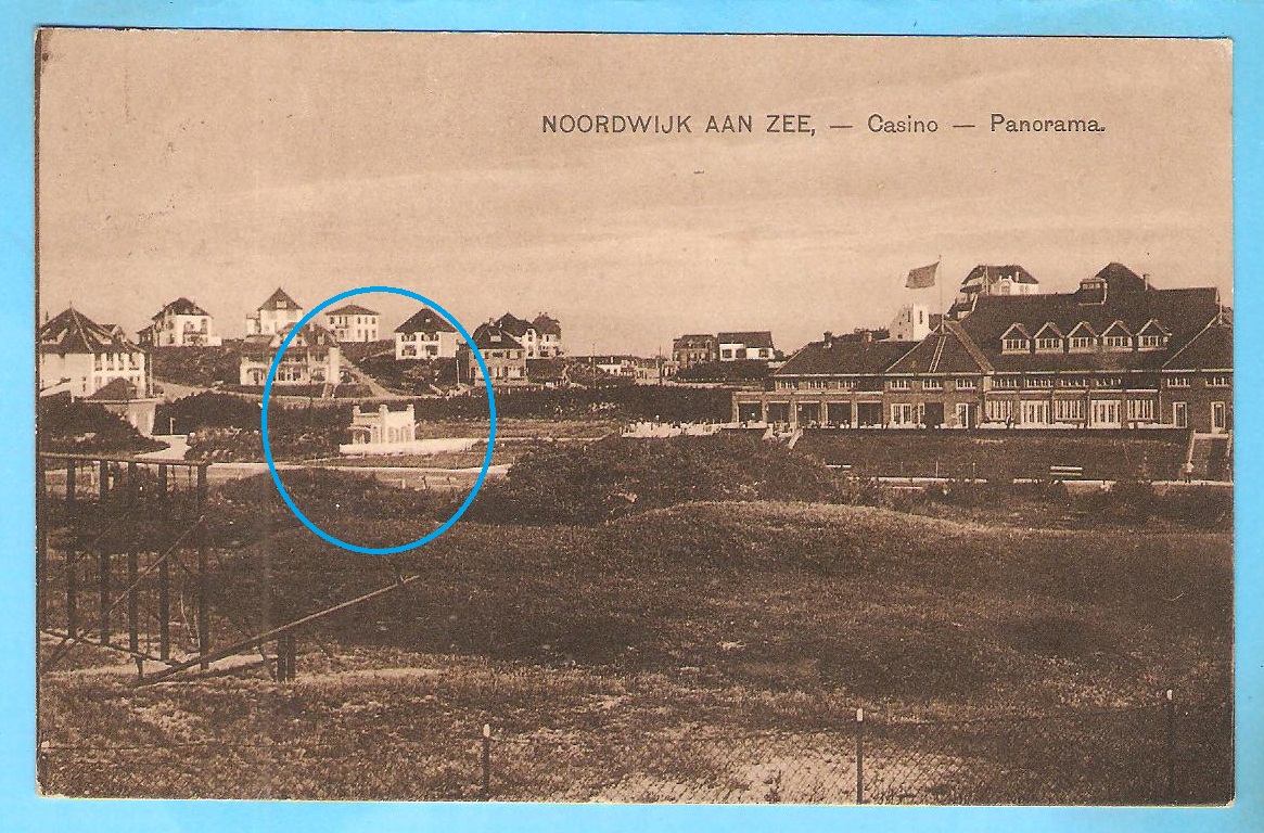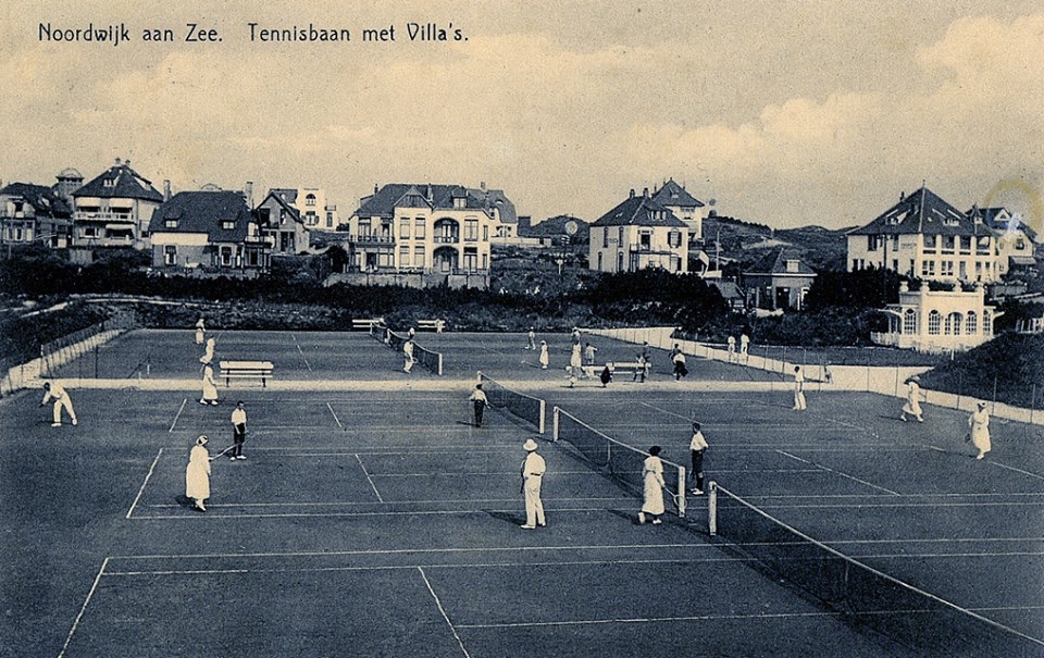 De tennisbanen van de Noordwijksche Sportvereeniging en van het latere Casino zijn hier al wel vaker langsgekomen, onvermijdbaar aanwezig als ze in Noordwijk altijd zijn geweest. Maar nu ontdek ik opeens een prachtig wit paviljoentje dat ik nog niet eerder heb opgemerkt. In alle eenvoud een beauty, een tempeltje. Ik zou graag een wat helderderder en gedetailleerderderder foto vinden van dit bouwsel, maar waar moet ik nog zoeken, als ik zoveel al heb afgestruind?