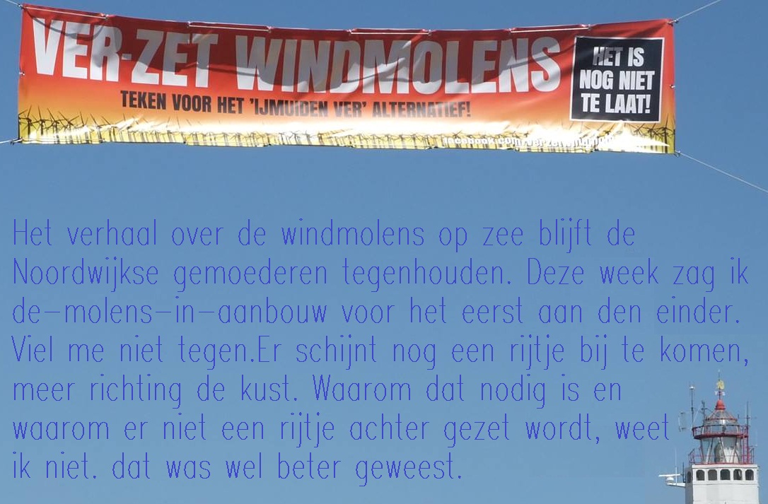 Al de huidige opwinding over die windmolens snap ik niet, in Frankrijk, Duitsland en Denemarken maken ze er een touristische attractie van! Bovendien heb ik nog nooit een Noordwijkse haan horen kraaien naar REM eiland of één van die vele, lelijke olietankers voor de kust.