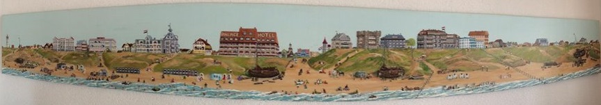 De moeder van Patrick heeft ooit een 3 meter brede schildering gemaakt van een vooroorlogse boulevard. Schitterend van compositie en kleur. Zou als uitklapfoto een mooi aanbod zijn in het kader van Noordwijk-150 Jaar Badplaats. Of zoiets