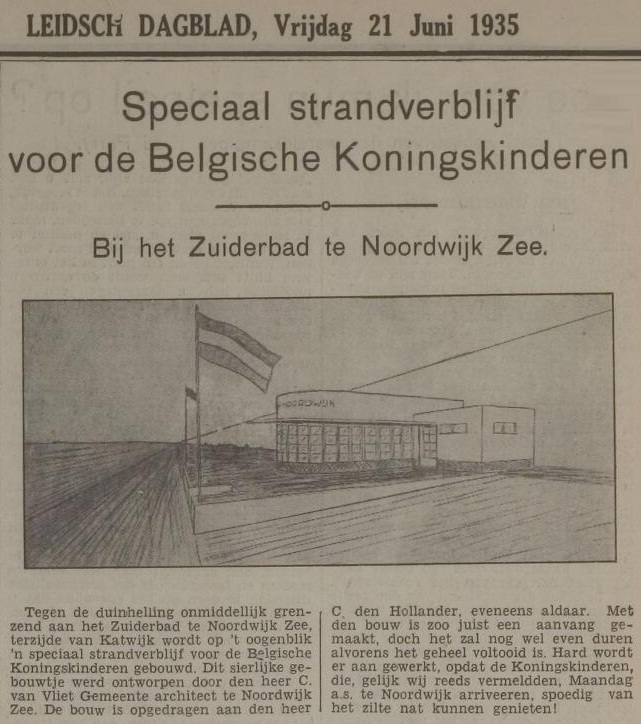 Omdat de Belgische koningskinderen Boudewijn en Charlotte in de zomer van 1935 naar Noordwijk zouden komen als logés van toenmalig burgemeester Van de Mortel, had het het gemeentebestuur behaagt een mooi paviljoen voor ze te laten bouwen. Die kids konden natuurlijk moeizaam in zo’n rieten strandstoel of oncomfortabele strandhut worden gepropt.