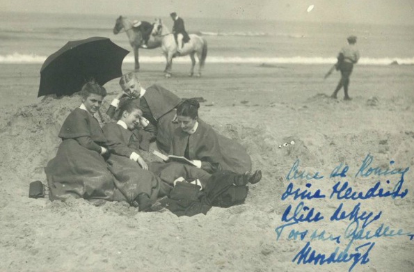 Uit het Utrechts Archief een groepsportret van enkele diaconessen uit het Diaconessenhuis te Utrecht, op het strand van Noordwijk ergens in 1910. V.l.n.r. de zusters Lenie de Koning, Dina Hendriks, Alida de Nijs en Toos van Garderen.