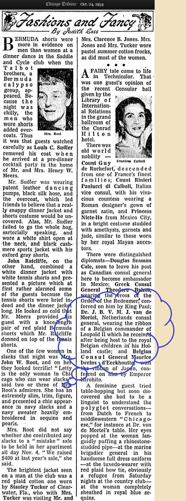 Van der Mortel had in de Jaren Dertig goed gescored met de ontvangst in Noordwijk van de Belgische koningskinderen en dat was een naam en een faam die hem tot in Chicago bleken te achtervolgen: de Chicago Trib van 24 oktober 1954 maakte niet alleen melding van de Belgische onderscheidingstekenen die Van der Mortel droeg, maar ook van de rden waarom hij die gekregen had. “Being host to the royal Belgian children in his Holland castle (lees: Villa Goohorst in Noordwijk Binnen).”