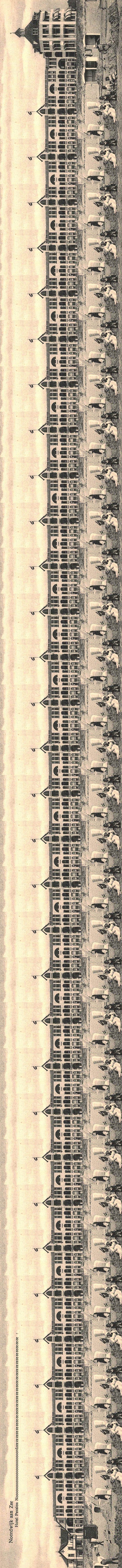 In Noordwijk heeft zoiets zich – gelukkig – nooit uit het duin verheven, ofschoon je met een beetje knip- en plakwerk je je daar wel een voorstelling van zou kunnen maken. Pension Noordzee was in dit geval een mooier voorbeeld van een ‘prora’: zo’n prachtig gebouw, het kon niet lang genoeg zijn.