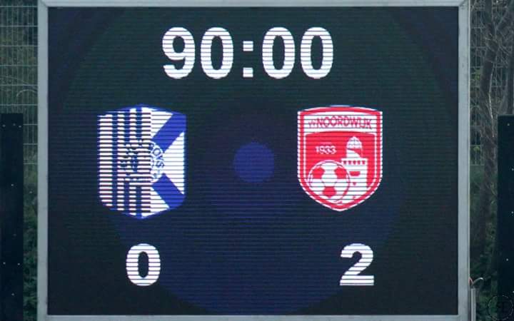 Na afloop van de wedstrijd zag ook het scorebord op Nieuw Zuid er wat ontredderd uit (foto Ron van der Linden):